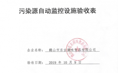 項(xiàng)目名稱(chēng):鶴山市東古調(diào)味食品有限公司污染源自動(dòng)監(jiān)控設(shè)施驗(yàn)收 單位地址:廣東省鶴山市古勞鎮(zhèn)麥水工業(yè)區(qū)3號(hào) 公示內(nèi)容:污染源自動(dòng)監(jiān)控設(shè)施驗(yàn)收表(包括基本情況表/聯(lián)網(wǎng)情況表/比對(duì)監(jiān)測(cè)情況表/驗(yàn)收組成員名單/現(xiàn)場(chǎng)驗(yàn)收表/驗(yàn)收意見(jiàn))