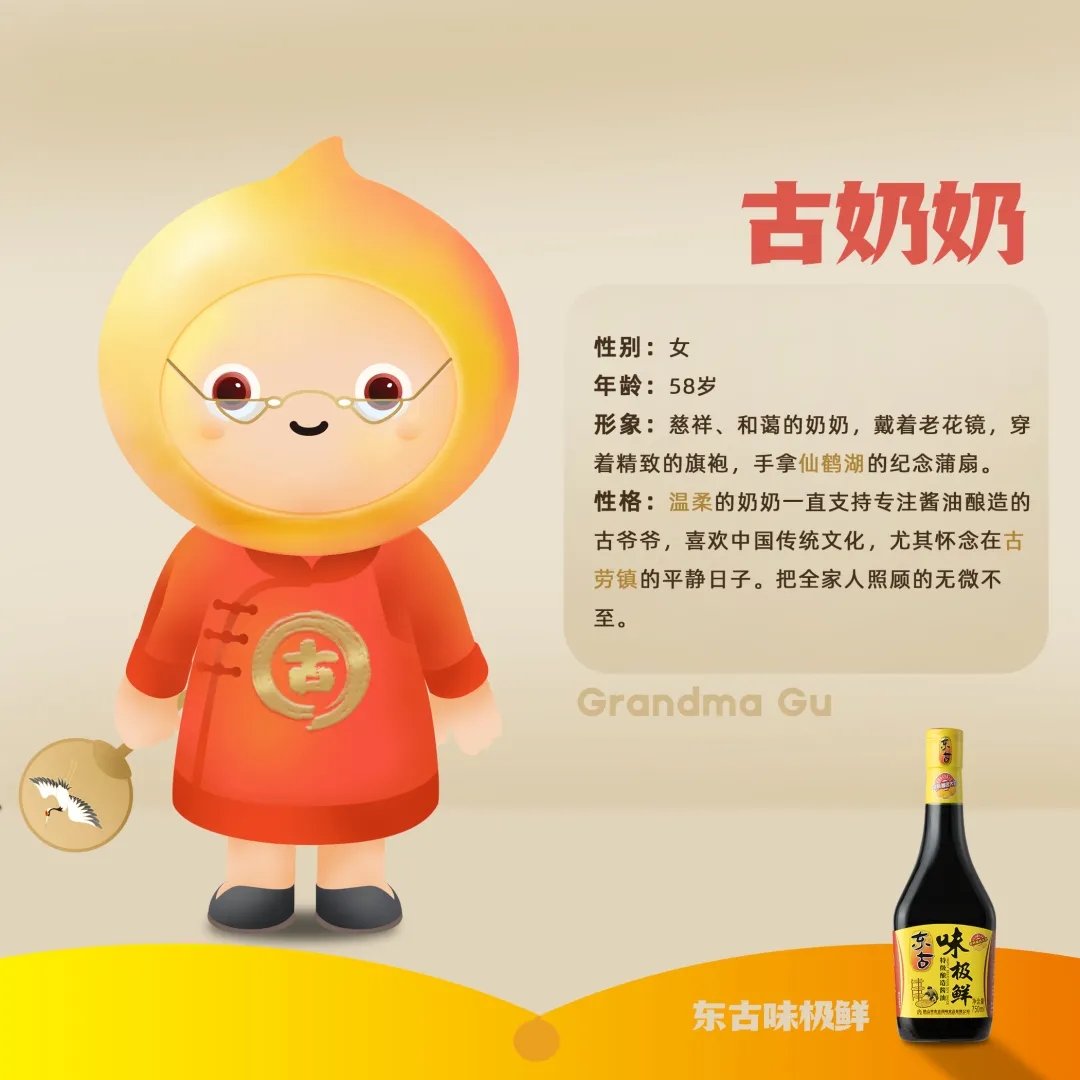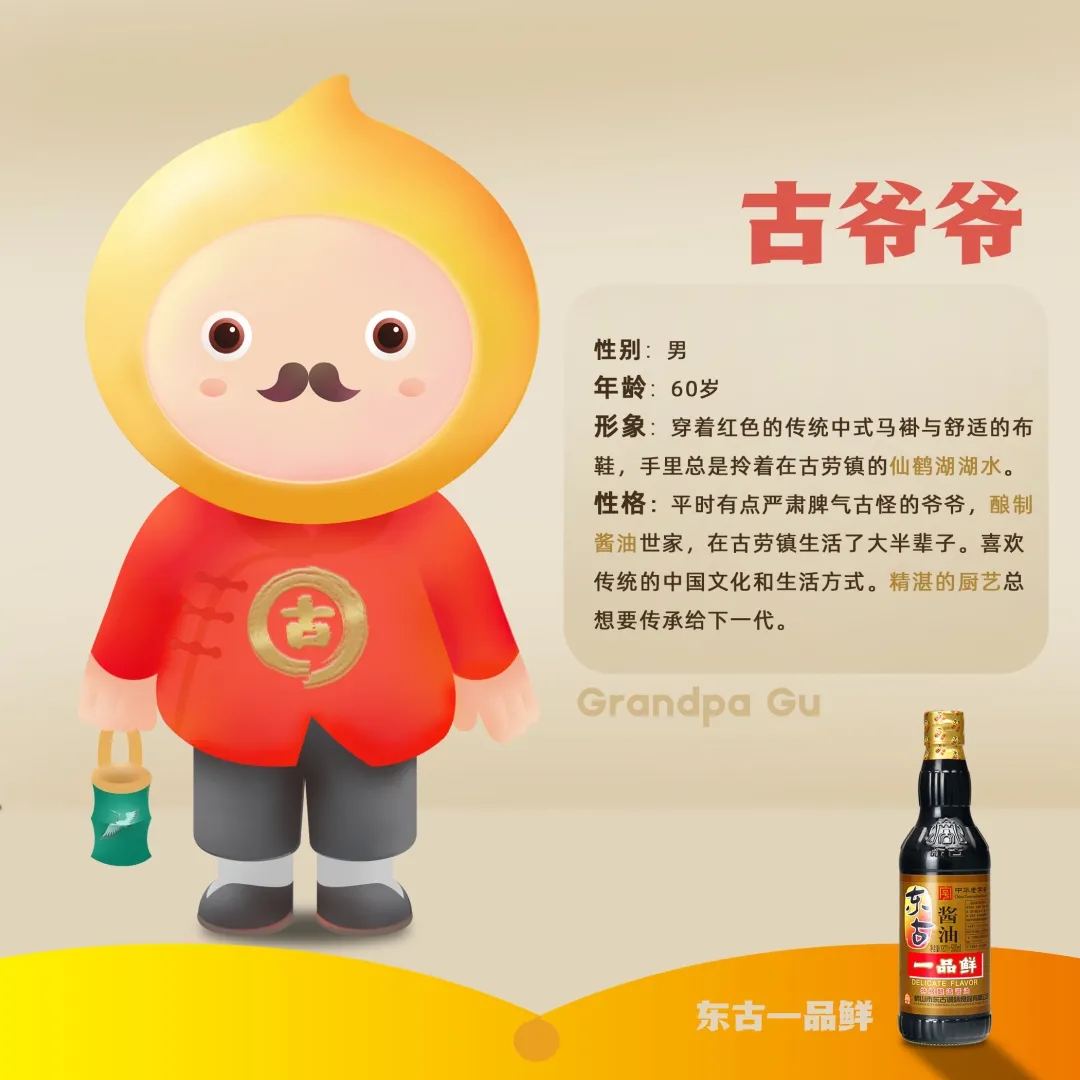 首先,隆重登場的是我們的古爺爺,穿著紅色的中式馬褂,拎著古勞鎮(zhèn)的仙鶴湖湖水,喜愛中國傳統(tǒng)文化,作為釀制醬油世家,嚴(yán)肅與嚴(yán)謹(jǐn)是他的代名詞。