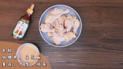 雞翅根 大蔥 姜 蒜 白芝麻 雞蛋