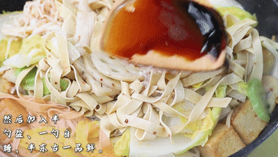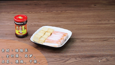 先倒入魚腐和蟹柳、翻炒均勻。然后按順序倒入土豆、蓮藕、萵筍、千張、金針菇、娃娃菜