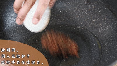 炸好的土豆片撈出,油別倒、倒入花椒和干辣椒炸出香味撈出