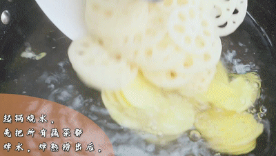起鍋燒水,先把所有的蔬菜都焯水,焯熟撈出后,再放入丸子煮熟,最后煮雞腎