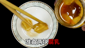 準(zhǔn)備兩塊腐乳,加入白砂糖攪拌均勻