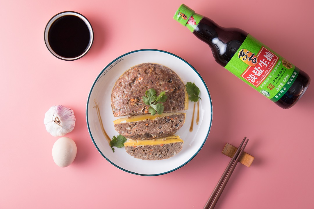 另拿一個(gè)碗,碗底刷油,把肉餡倒入碗中壓實(shí)后,用錫紙封好