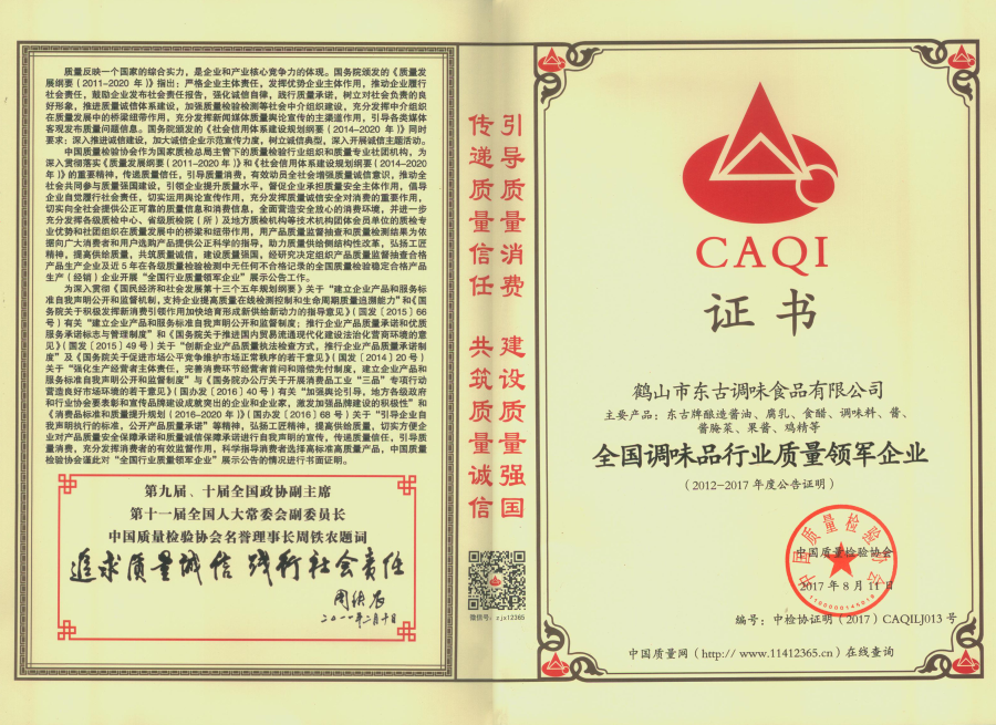 2017全國調(diào)味品行業(yè)質(zhì)量領軍企業(yè)
