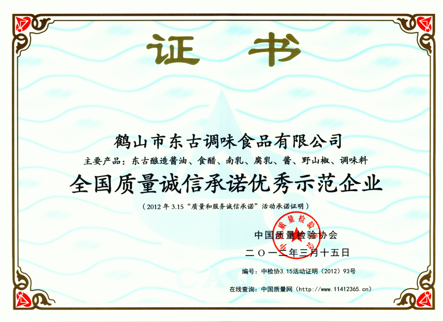 2013全國質(zhì)量誠信承諾優(yōu)秀示范企業(yè)