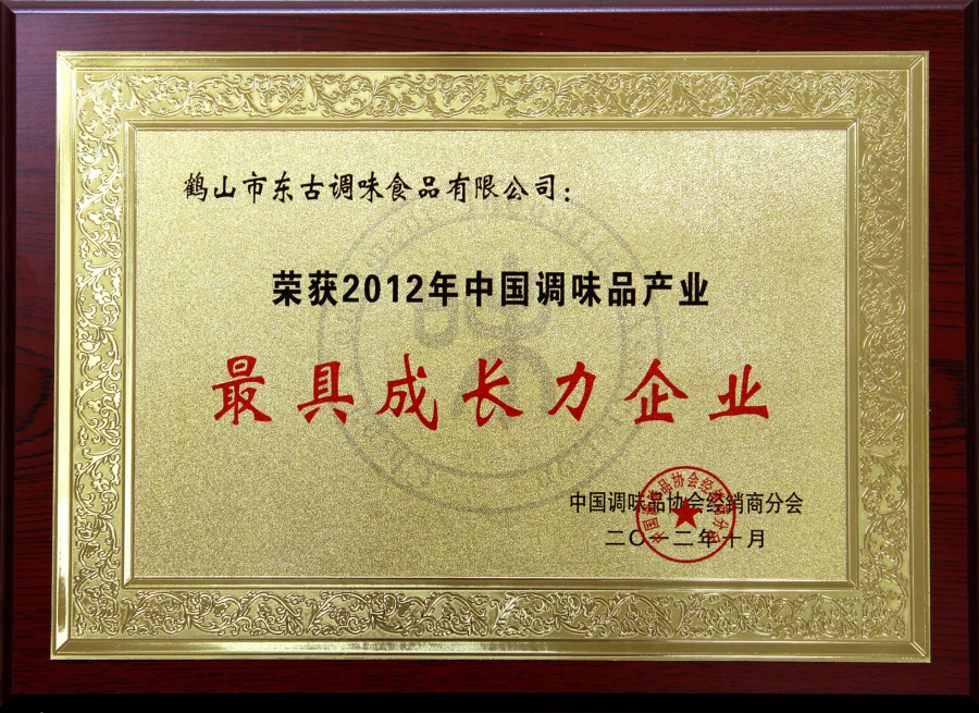 2012年度廣東省食品行業(yè)誠信自律先進(jìn)企業(yè)證書