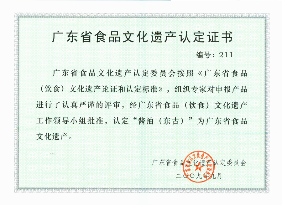 2009食品文化遺產(chǎn)認(rèn)定證書