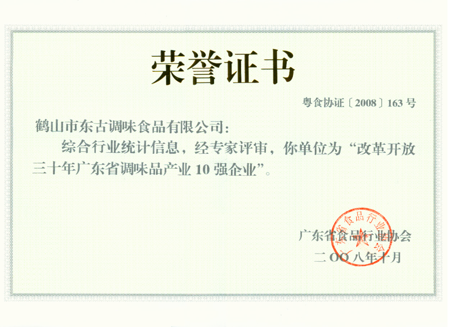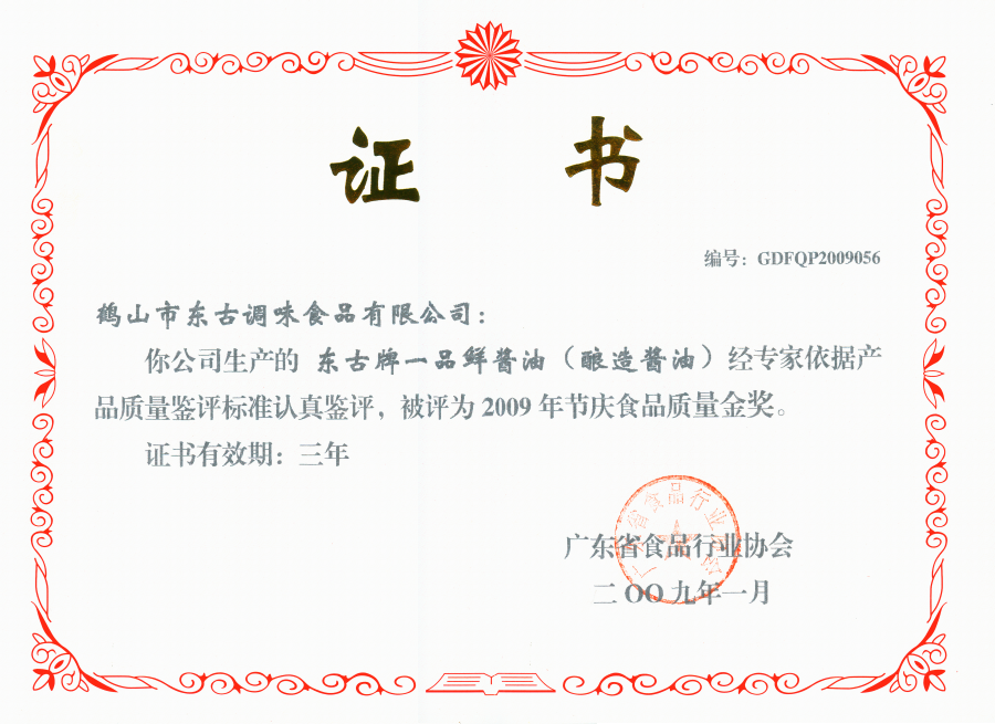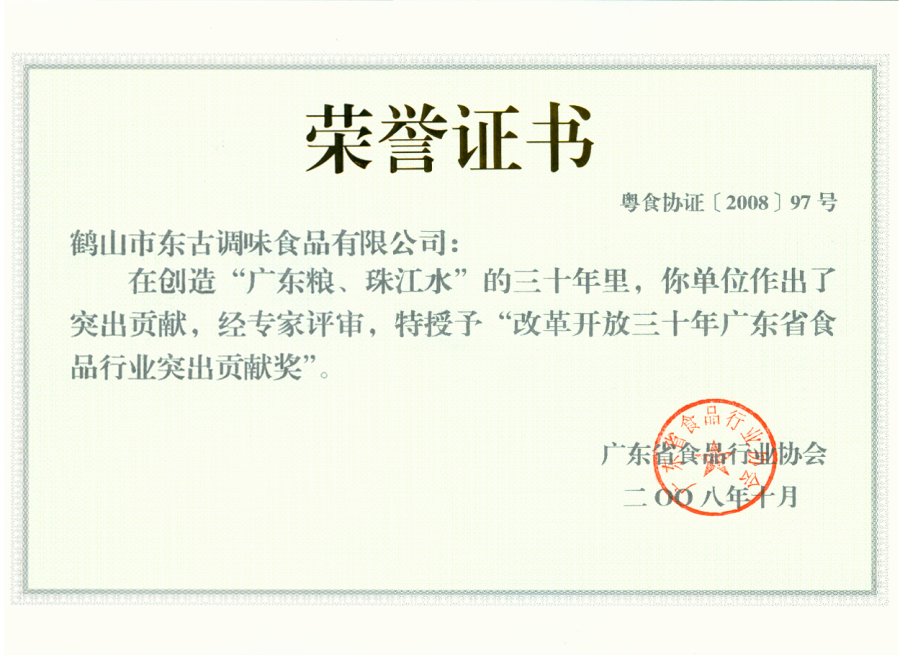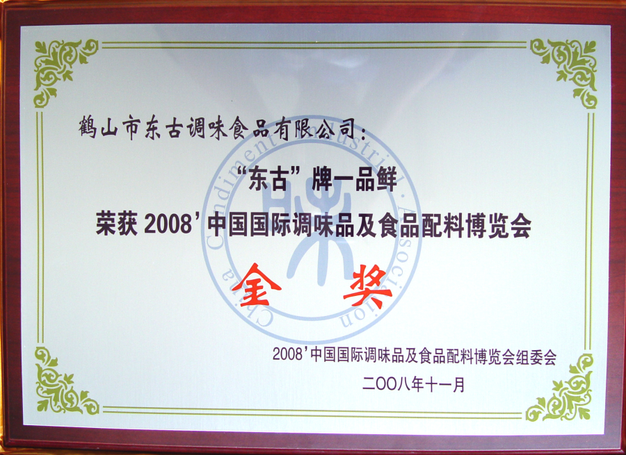2008國(guó)際調(diào)味品及食品配料博覽會(huì)金獎(jiǎng)