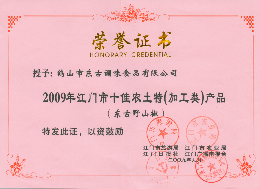 2009江門(mén)市十佳農(nóng)土特產(chǎn)(野山椒)